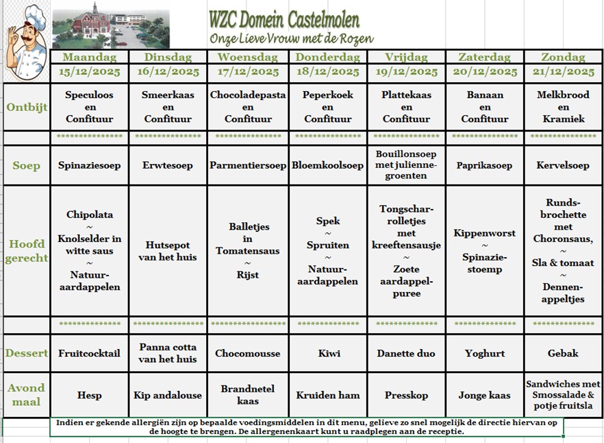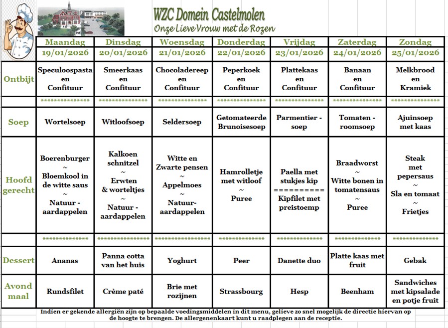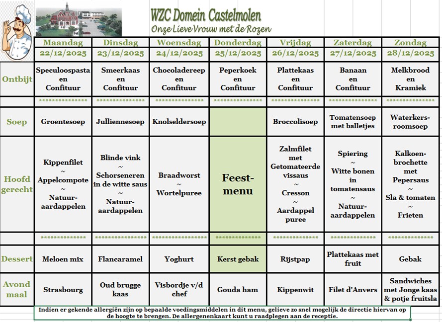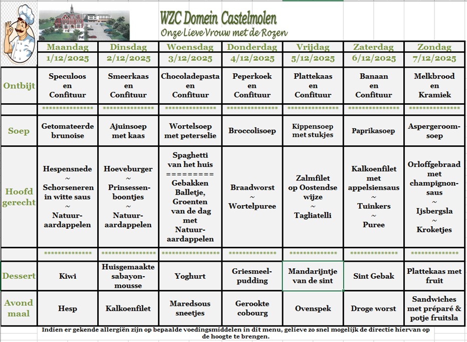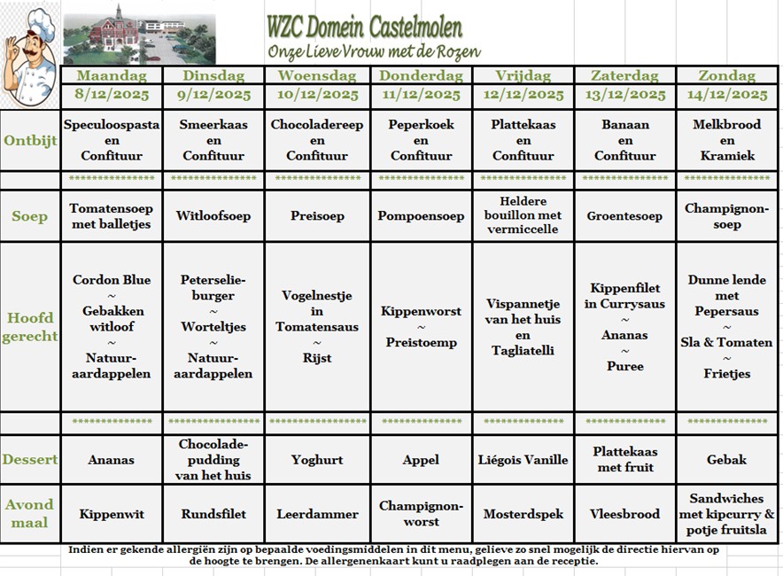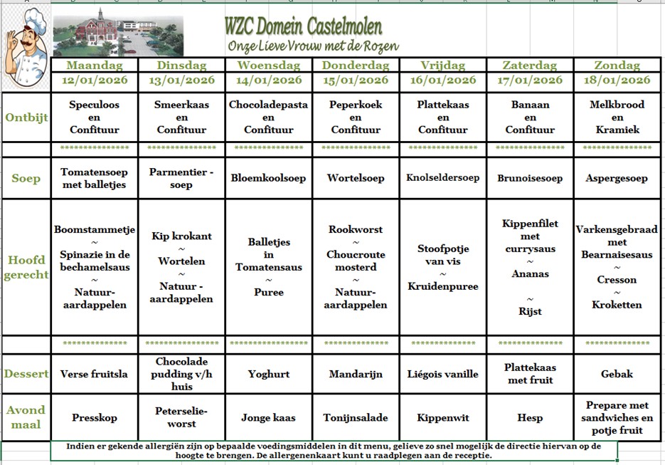 Hier vind je een maandoverzicht van onze lekkere aangepaste keuken. Smakelijk!