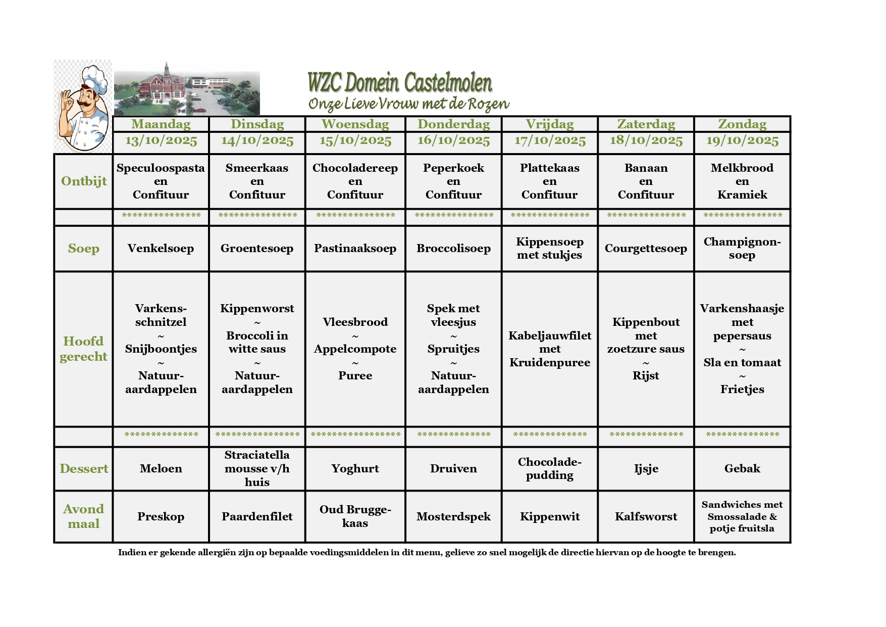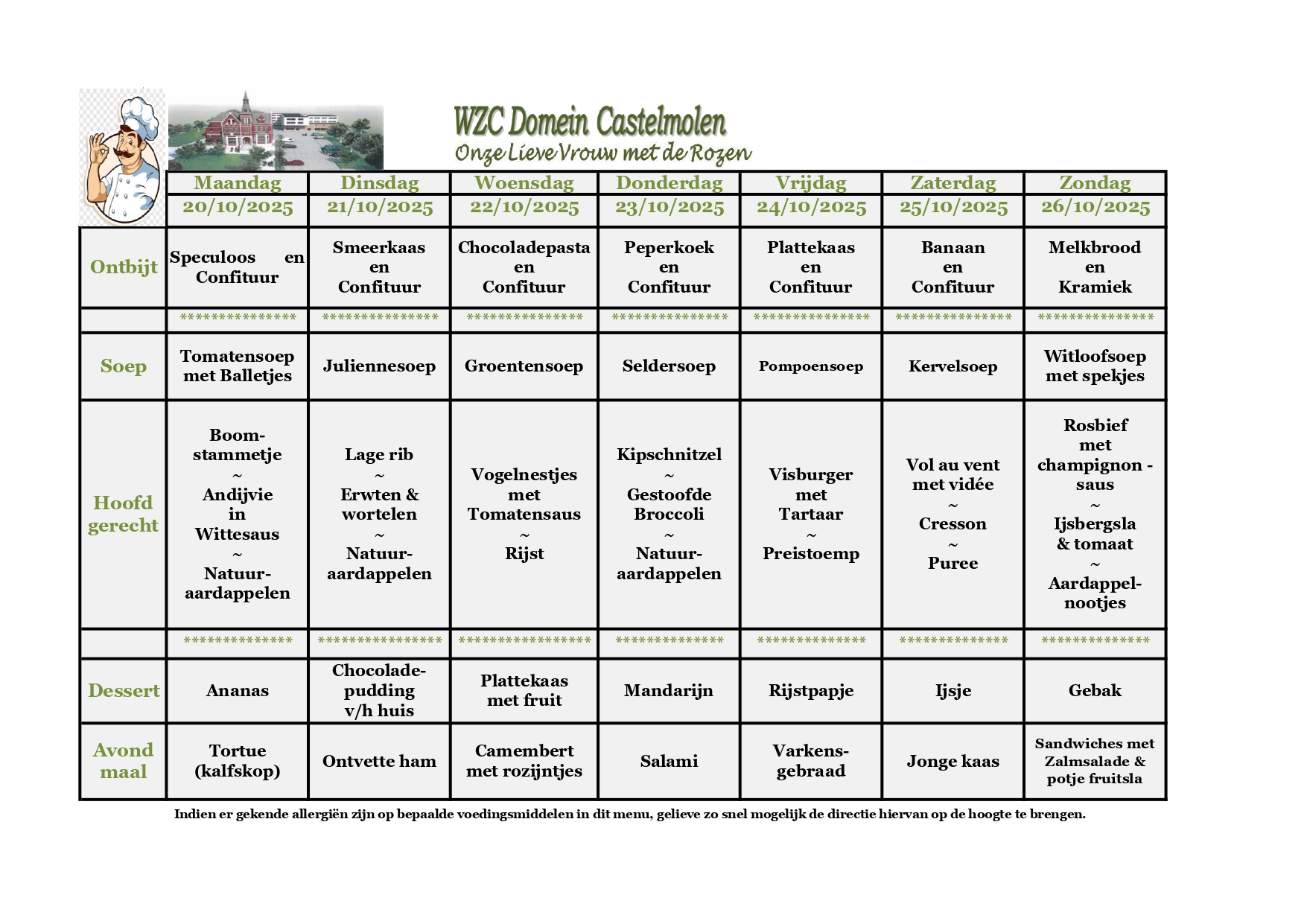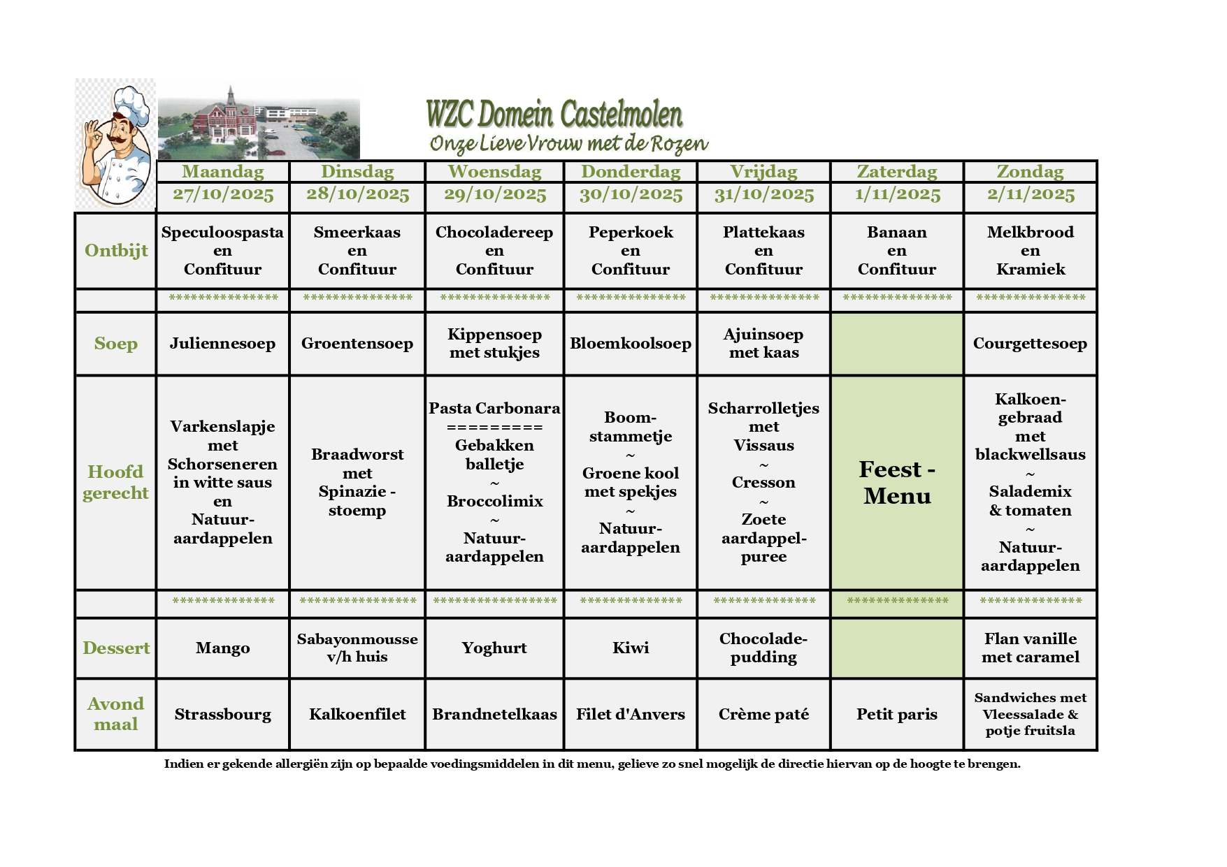 Hier vind je een maandoverzicht van onze lekkere aangepaste keuken. Smakelijk!